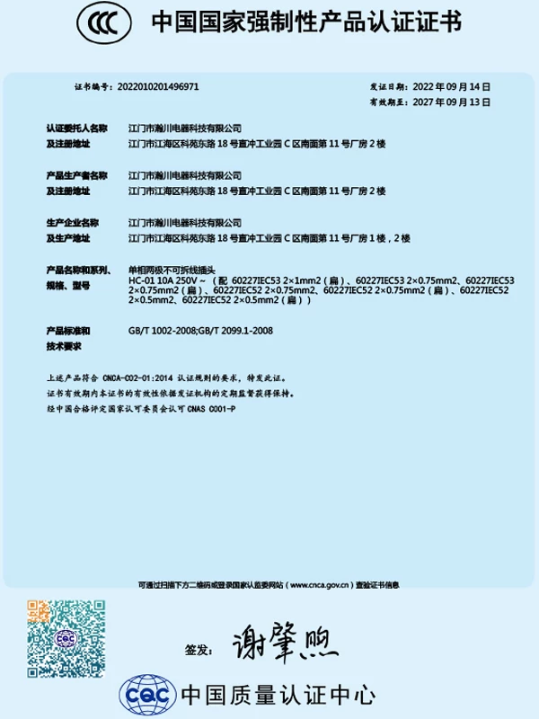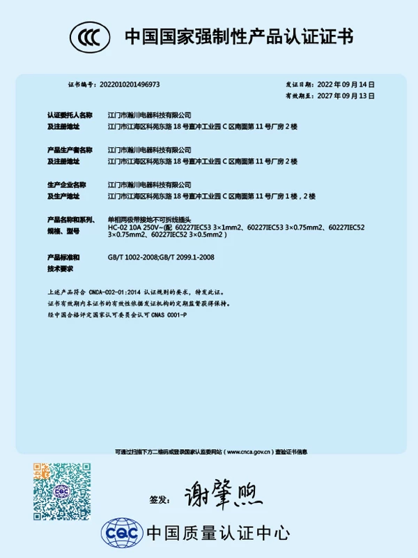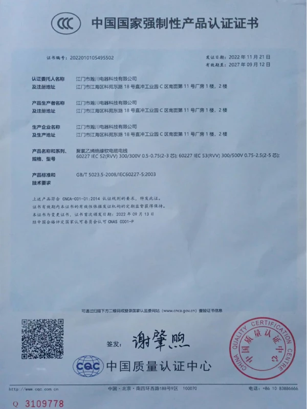 Passed CQC review in 2017 and obtained 3C certificates for wires and plugs. VDE certification is also about to be passed